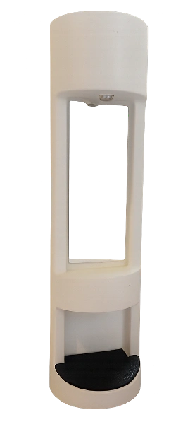 Reflective surface mimicking mirror with a base suggesting a collection tray-foot pedal.