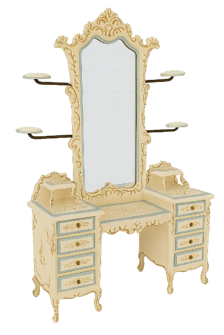 Add a touch of vintage charm to your dollhouse bedroom with this beautifully crafted Mirrored Dressing Table with its intricate hand-painted floral decorations on a classic cream finish. It will make a delightful addition to any dollhouse interior.