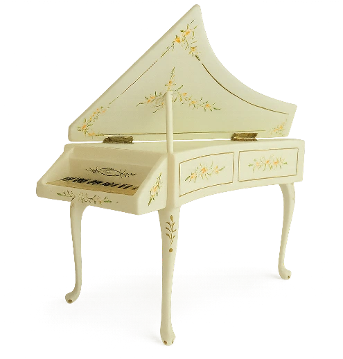 Add a touch of musical elegance to your miniature world with this exquisite harpsichord features delicate hand-painted floral details with gracefully carved legs and a high-quality finish. The lid opens to reveal the keys and a music stand making it a perfect addition to any dolls house music room or elegant display.