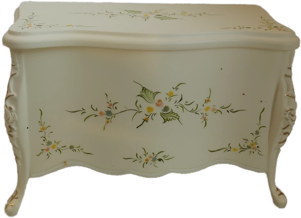Elegant miniature cabinet with intricate hand painted detailing.