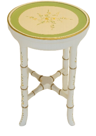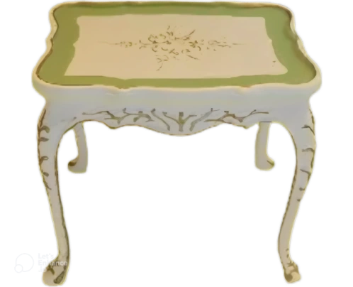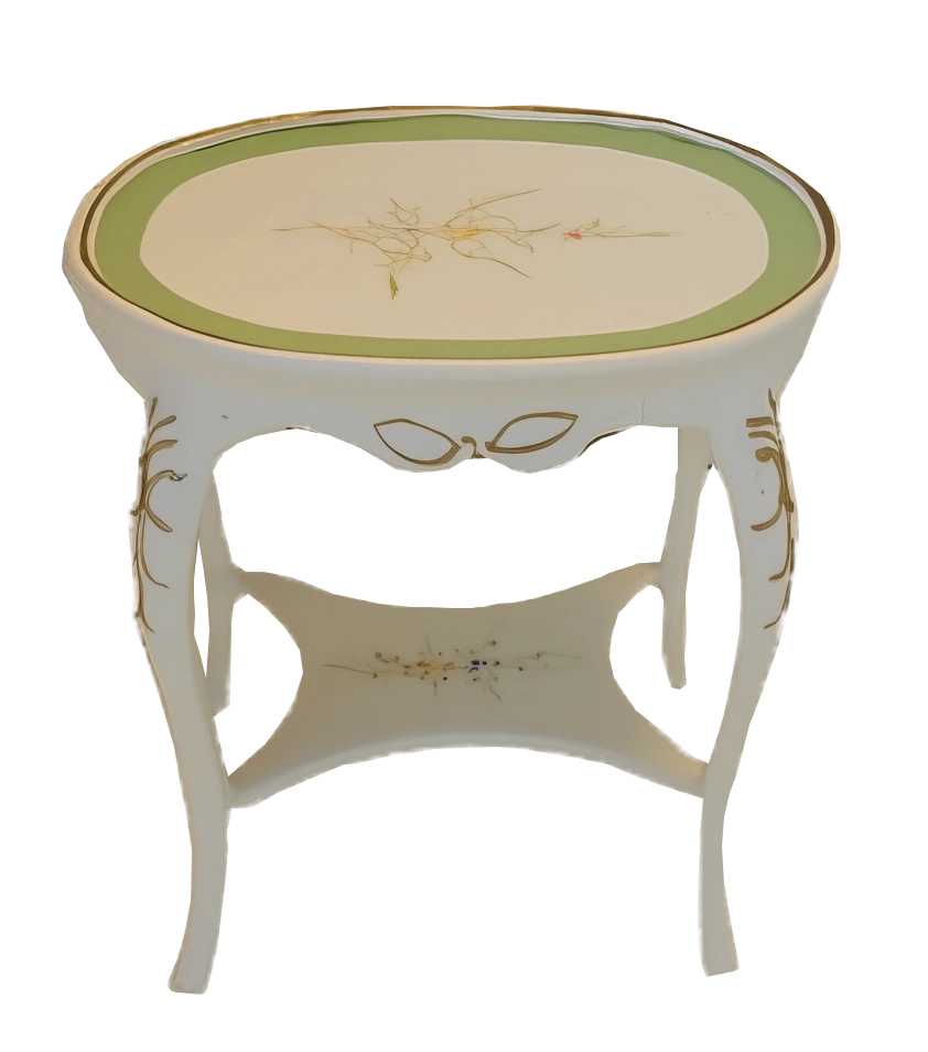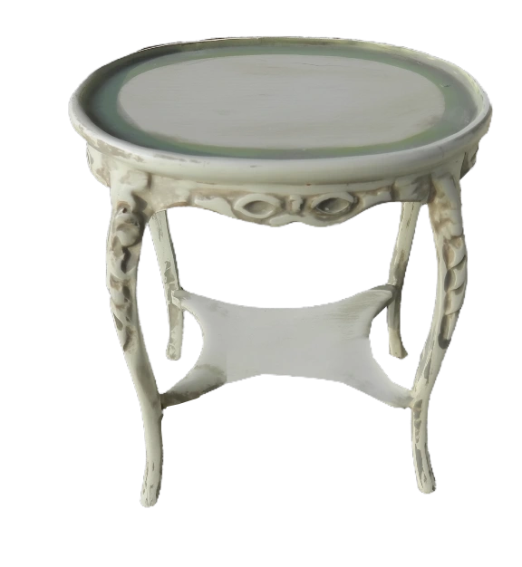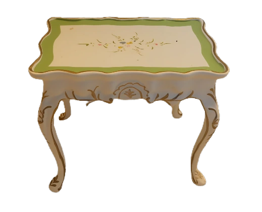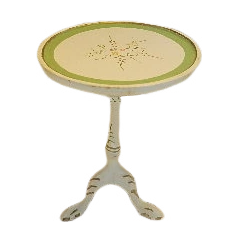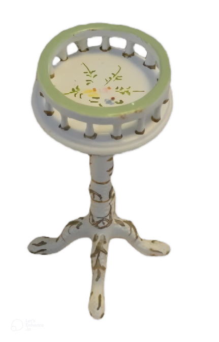 Elegant miniature side table is perfect for a dollhouse or display. It features a classic design with decorative accents and a charming cream finish. Add a touch of sophistication to any small setting.