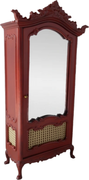 Elevate your dollhouse interior with this charming Jeanne Swag style Armoire. Crafted with meticulous detail it features a mirrored front that adds elegance and functionality with a beautiful full-length mirror integrated into armoire door. With drawers and a clothes bar included this piece is ideal for keeping your clothes and accessories organised.