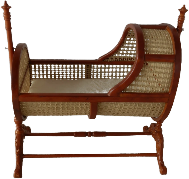 This William IV mahogany and cane rocking cradle offers a touch of antique elegance for any dollshouse nursery featuring delicate turned finials a beautifully caned body. This piece showcases classic craftsmanship and timeless style Mahogany frame provides a sturdy yet graceful structure.